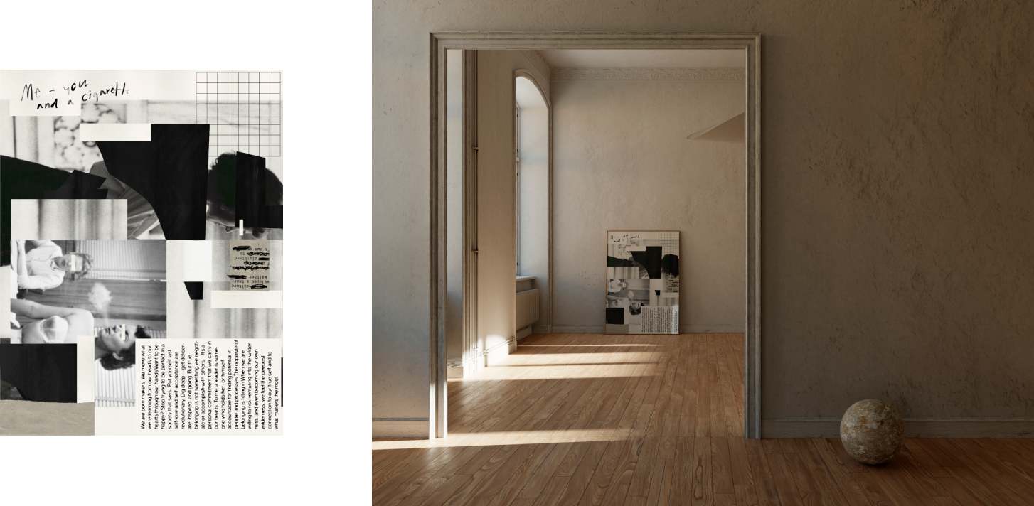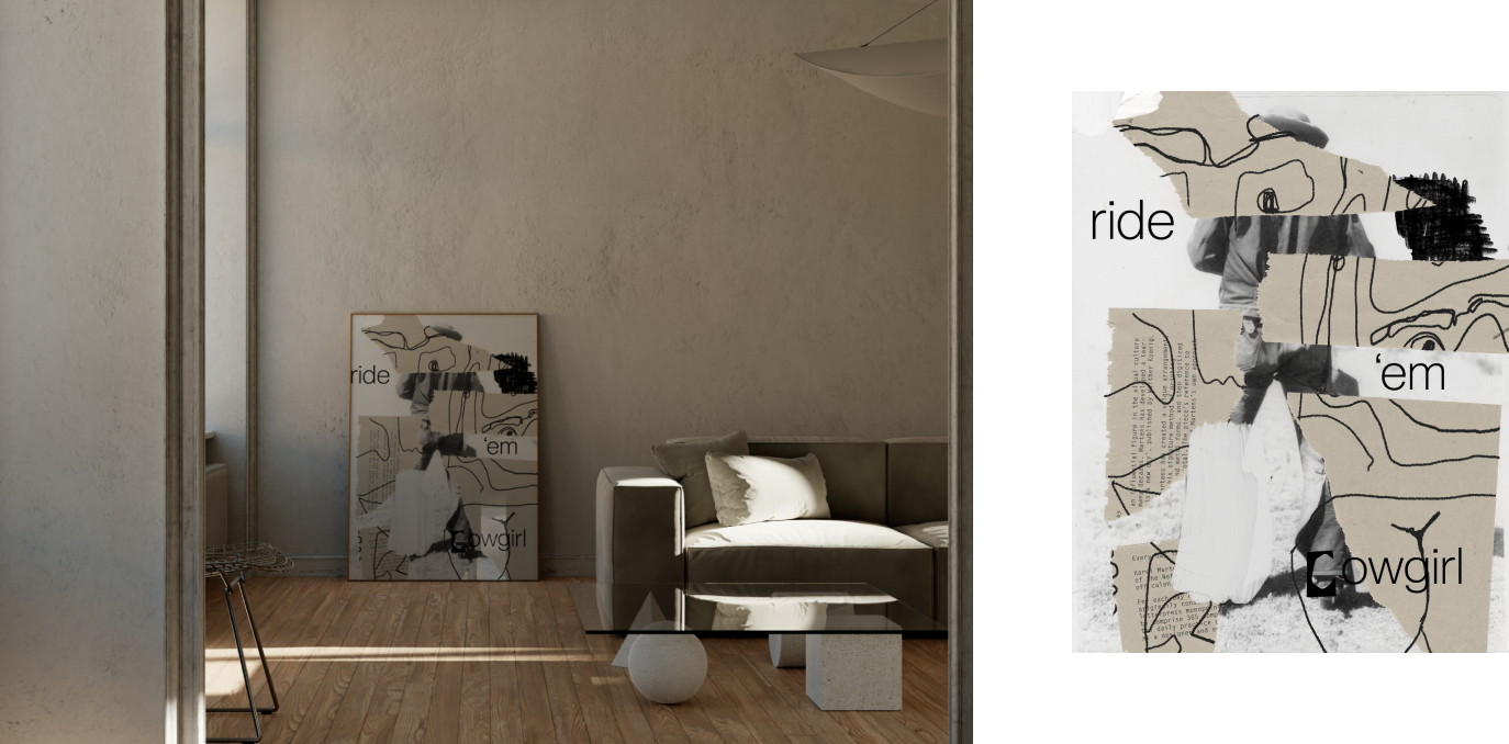 I repeat this process until the final composition is complete and enhance it with textures, typography, and illustrations in Photoshop.